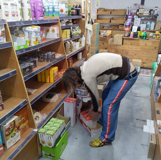 We have had to make a number of changes to the ways in which we operate. The shop has remained open but we have taken many precautions to keep the staff and customers safe. These include taking card payments only, stocking shelves in quiet periods (see Paul and Chris here hard at work), encouraging social distancing and extra cleaning duties.